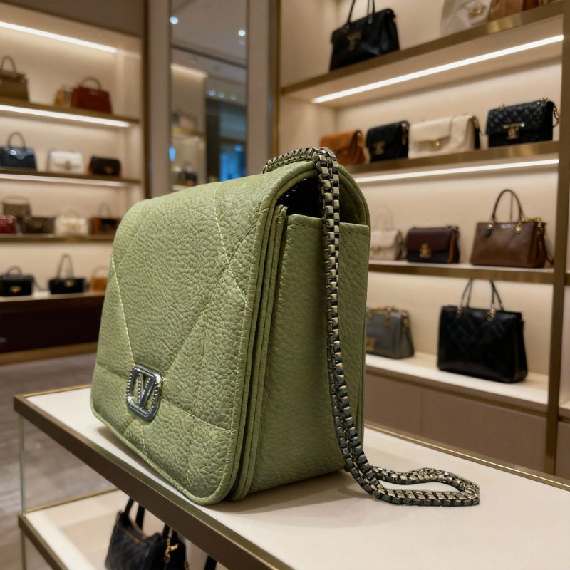 Bolsa com alça dupla de corrente de metal.Tamanho G